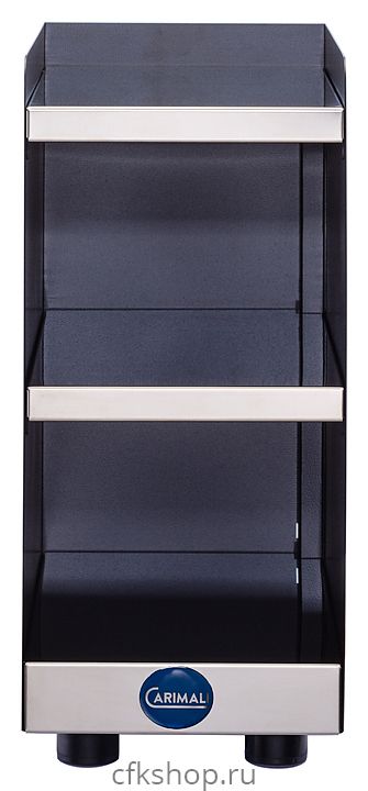 Подогреватель чашек Carimali CW-S используется совместно с кофемашинами серий BlueDot, BlueDot Plus, BlueDot Power и BlueDot 26 на предприятиях общественного питания и торговли. Модель оснащена 3 полками, 2 из которых с подогревом. Корпус черного цвета с элементами из нержавеющей стали.
