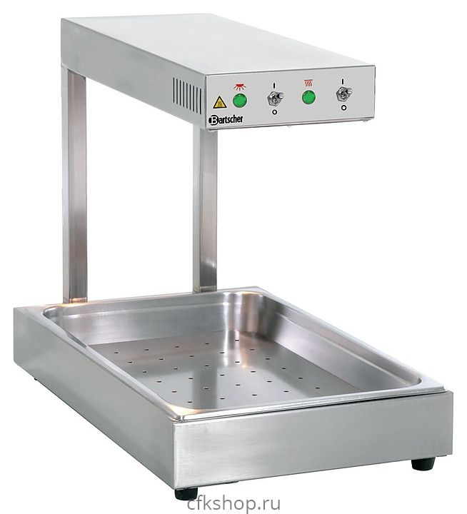 Инфракрасный подогреватель Bartscher IHR1000 A114001 предназначен для подогрева и поддержания в теплом состоянии готовых блюд на предприятиях общественного питания и торговли. Модель оснащена инфракрасными нагревательными трубами. Корпус выполнен из хромникелевой стали.