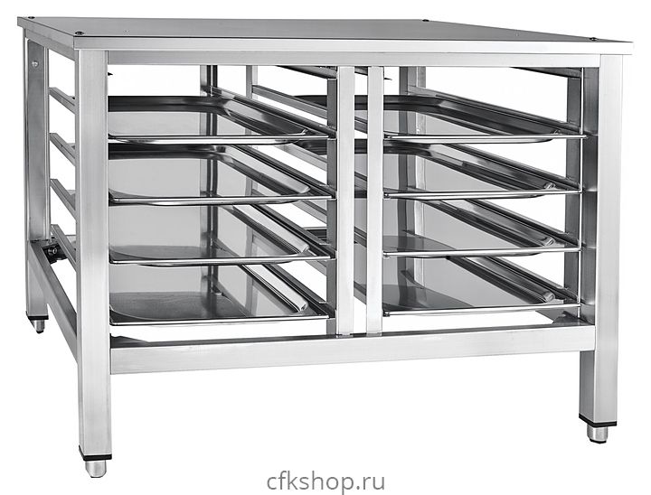 Подставка Abat ПК-10М используется совместно с пароконвектоматами ПКА 10-1/1ВМ2, ПКА 10-1/1ВМ, ПКА 10-1/1ПМ и ПКА 10-1/1ПП2 на предприятиях общественного питания и торговли. Модель оснащена регулируемыми по высоте ножками. Каркас выполнен из окрашенной стали, направляющие - из нержавеющей стали.
