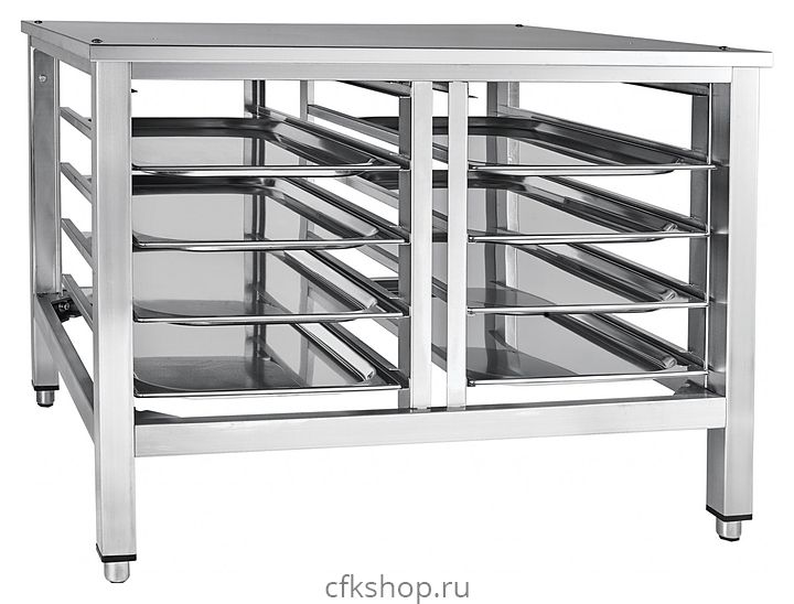 Подставка Abat ПК-6МФ используется совместно с пароконвектоматом ПКА 10-1/1ПМФ на морских судах, на площадках в открытом море и на береговых линиях. Модель оснащена направляющими специальной формы, предотвращающие самопроизвольное выкатывание гастроемкостей при качке и регулируемыми по высоте ножками с резиновыми вставками.