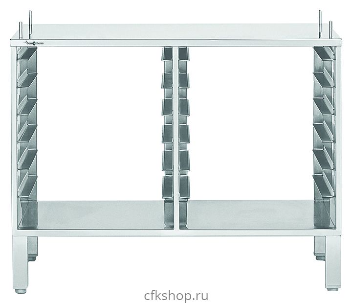 Подставка Convotherm 3251504 Р-430 используется совместно с пароконвектоматами 4 easyDial 6.10 и 4 easyTouch 6.10 на предприятиях общественного питания. Модель оснащена 14 парами направляющих. Изделие выполнено из нержавеющей стали.