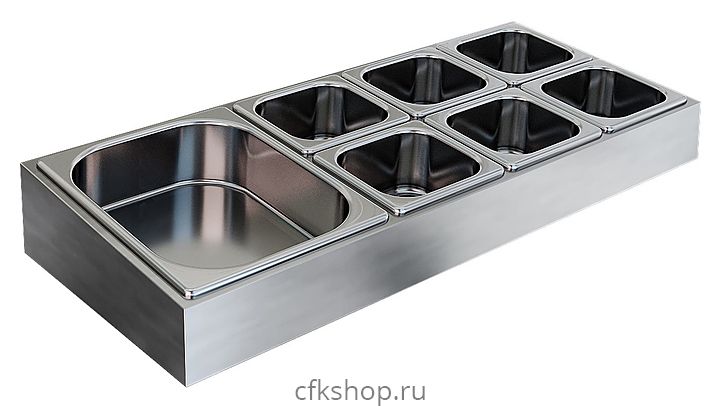 В комплект поставки входят гастроемкости GN 1/6 - 6 шт и GN 1/2 - 1шт.