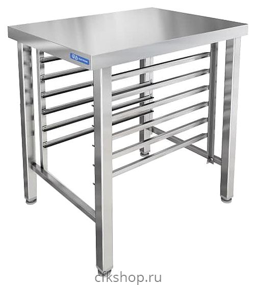 Подставка KAYMAN ПКУ-2 используется на предприятиях общественного питания и торговли совместно с пароконвектоматами серии COMPACT для хранения противней и гастроемкостей GN 1/1. Каркас выполнен из нержавеющей трубы AISI 430, столешница - из нержавеющей стали AISI 430.