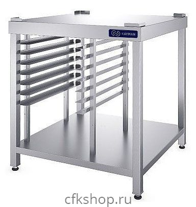 Подставка KAYMAN ПО-191/0909-09-А используется для установки технологического оборудования на предприятиях общественного питания и торговли. Модель оснащена столешницей, полкой, направляющими, регулируемыми по высоте опорами и в верхней части столешницы по углам установлены упоры. Разборный каркас выполнен из трубы 40х40 мм нержавеющей стали AISI 304, стоики - из стали AISI 210.