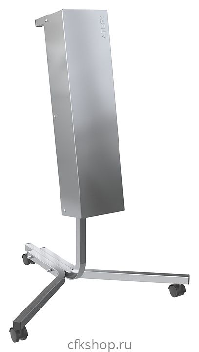 - Поставляется в разобранном виде - для сборки необходимо соединить стойку и 2 уголка при помощи 2 болтов, закрутить в резьбовые отверстия 3 колесные опоры, после чего закрепить на стойке рециркулятор при помощи 2 болтов