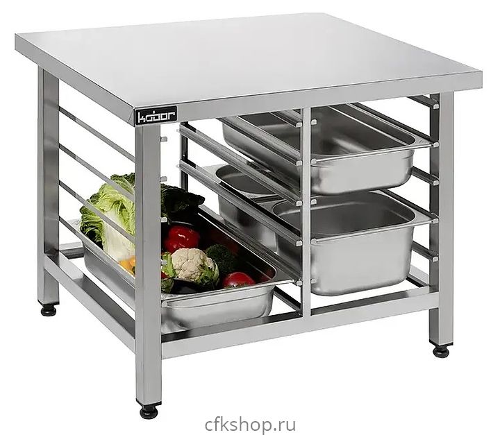 Подставка Кобор ПП-60/52 изготовлена из высококачественной стали aisi 430 с усилением ОСП. Изделие имеет направляющие, позволяющие разместить в них гастроемкости либо противни, в зависимости от модели подставки. Ножки регулируются по высоте, что позволяет исправить неровности пола. Подходит для пароконвектомата UNOX серии XF