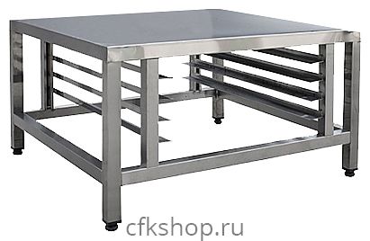 Подставка Пищевые Технологии ПКМ-4 используется совместно с пароконвектоматами. Модель оснащена регулируемыми по высоте ножками. Каракас выполнен из нержавеющей трубы.