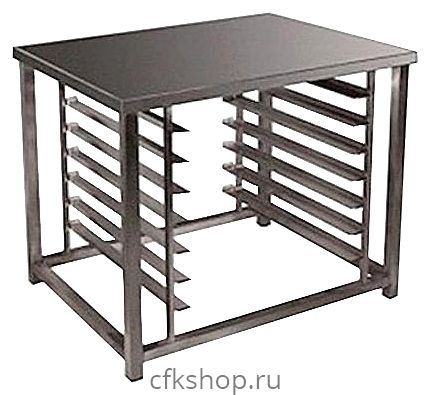 Подставка Assum ППК-9/7 предназначена для размещения пароконвектоматов на предприятиях общественного питания и торговли. Модель оснащена обвязкой с 4 сторон и регулируемыми по высоте пластиковыми опорами. Каркас выполнен из трубы 40х40 мм нержавеющей стали AISI 430, вертикальные опоры направляющих - из квадратной трубы 20х20 мм нержавеющей стали AISI 430, столешница, направляющие и обвязка - из нержавеющей стали AISI 430.