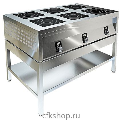 Подставка Техно-ТТ СПИ-033/1218 предназначена для установки на неё индукционной плиты ИПП-610196, а также для хранения кухонного инвентаря на предприятиях общественного питания и торговли. Модель оснащена 1 сплошной полкой и регулируемыми по высоте ножками, что позволяет компенсировать неровности пола. Разборный каркас выполнен из трубы 40х40 из нержавеющей стали AISI 430, полка - из нержавеющей стали AISI 430.