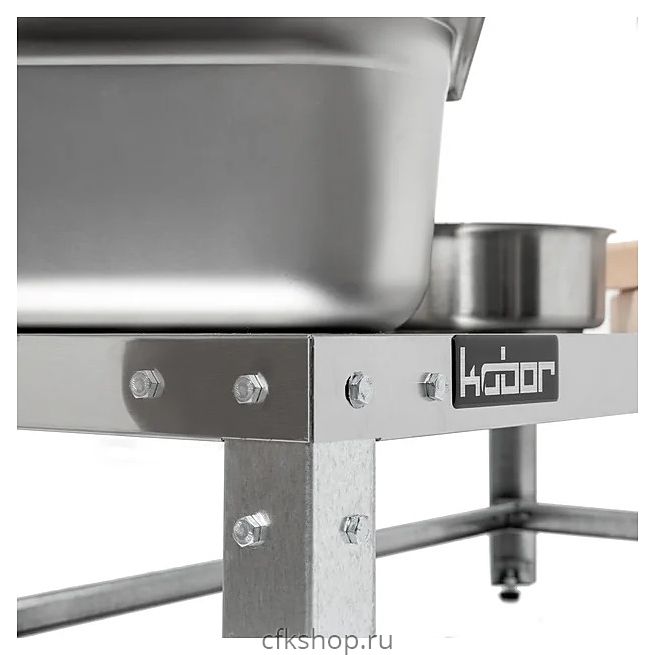 Подтоварник Кобор ПТ-120/50/430 служит для временного складирования кухонного инвентаря и продуктов питания. Подтоварник произодится из оцинкованной стали. Ножки регулируются по высоте, позволяя избежать наклона рабочей поверхности. Изделие доставляется в разобранном виде для облегчения транспортировки.