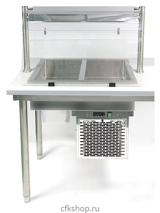 Полка-надставка Kocateq DM94588NE предназначена для установки на мармит DM 94943.3, салат-бар DM94930.3 и другие встраиваемые элементы линии раздач на предприятиях общественного питания и торговли. Модель оснащена наклонным стеклом со стороны покупателя для защиты продуктов питания от загрязнения. Стойки и верхняя полка выполнены из нержавеющей стали.