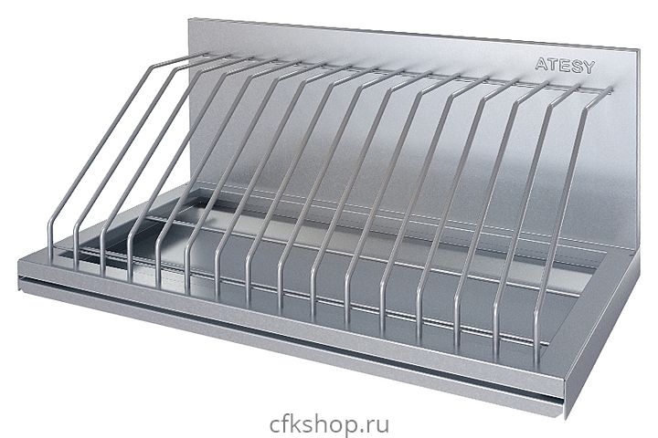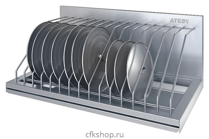 Настенная полка ATESY ПКК-С-300.350-6-02 серии Стандарт используется на предприятиях общественного питания и торговли для хранения и сушки в естественных условиях крышек кастрюль, баков и другой посуды. Полка выполнена из нержавеющей стали AISI 430, отделения для крышек - из прутка из нержавеющей стали AISI 304.