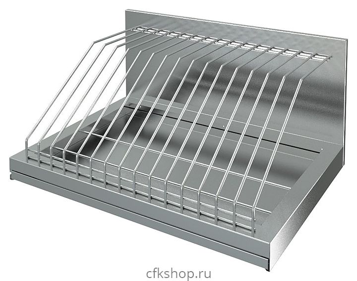 Кухонная полка Марихолодмаш ПКД-600 предназначена для хранения и сушки крышек кастрюль и баков различного диаметра на предприятиях общественного питания в моечных отделениях и складских помещениях. Внизу полки расположен специальный съемный поддон для сбора стекающей воды. Все детали выполнены из нержавеющей стали AISI 430 толщиной 0,5 мм, решетка - из проволоки диаметром 5 мм.