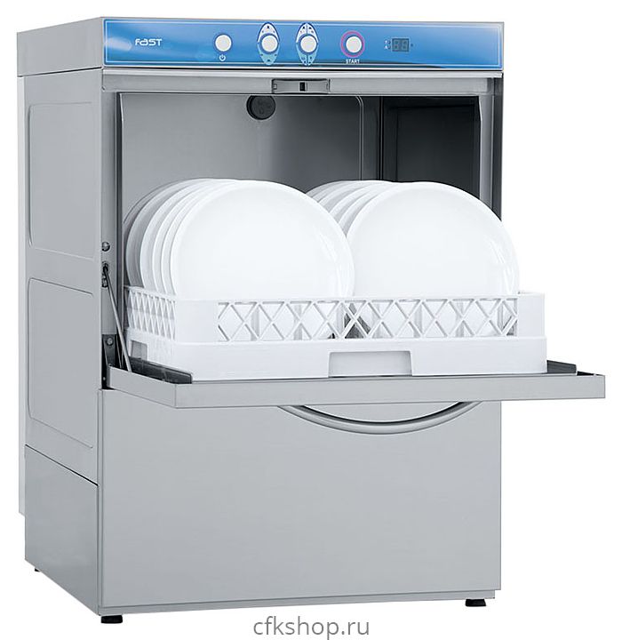 Посудомоечная машина с фронтальной загрузкой Elettrobar FAST 60MS используется на предприятиях общественного питания для мытья стаканов, посуды и кухонной утвари. Модель оснащена электромеханической панеью управления со световыми индикаторами и перистальтическим дозатором ополаскивающего средства.