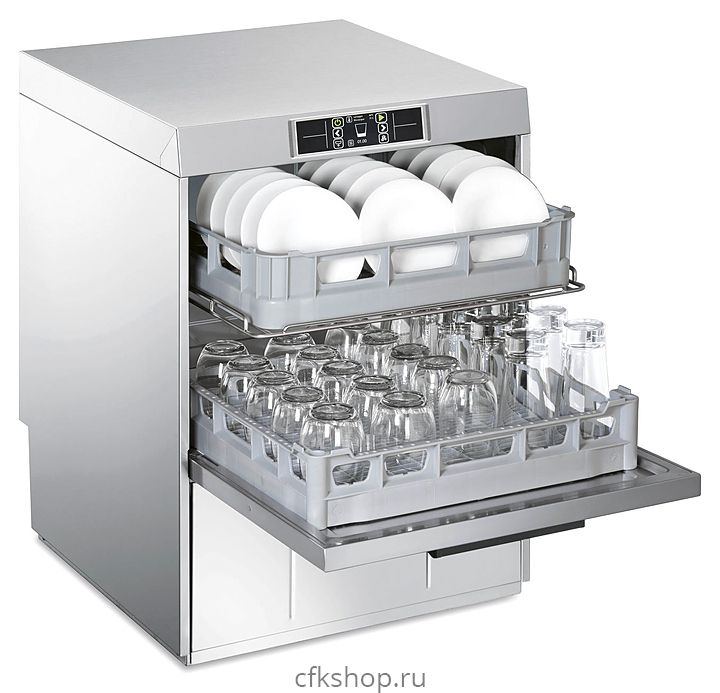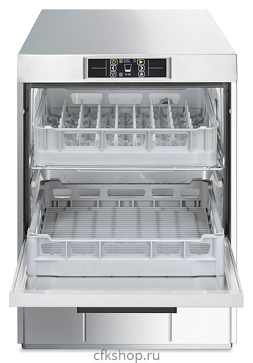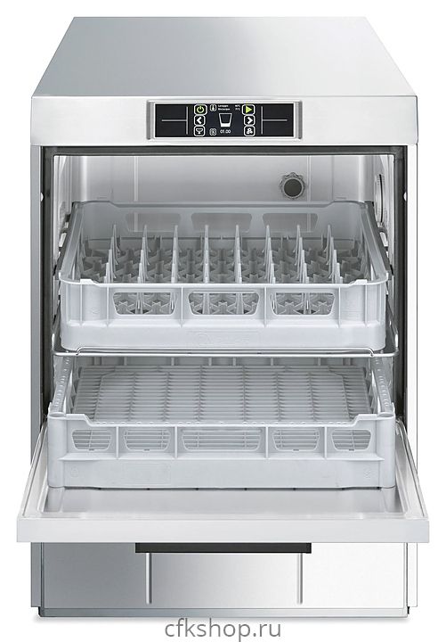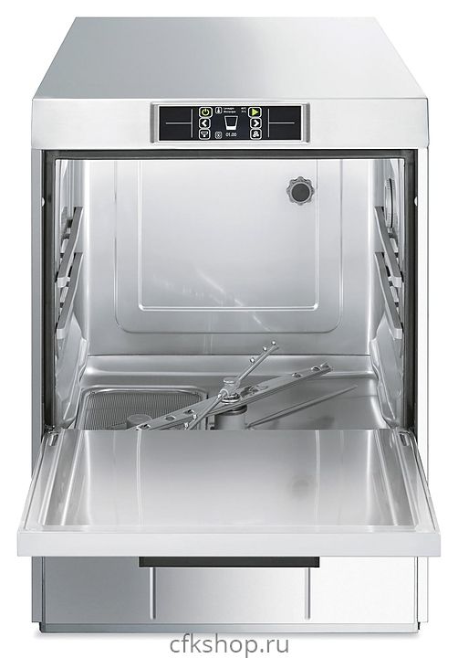 Посудомоечная машина с фронтальной загрузкой Smeg UD522DS серии Topline используется на предприятиях общественного питания и торговли для мойки столовых приборов, тарелок, стаканов, чашек и другой посуды. Модель оснащена электронной панелью управления. Корпус выполнен из нержавеющей стали AISI 304.