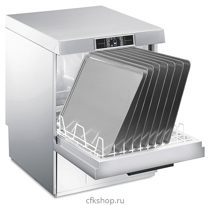 Посудомоечная машина с фронтальной загрузкой Smeg UD526DS серии Topline используется на предприятиях общественного питания и торговли для мойки столовых приборов, тарелок, стаканов, чашек и другой посуды. Модель оснащена электронной панелью управления. Корпус выполнен из нержавеющей стали AISI 304.