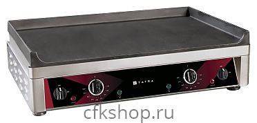 Жарочная поверхность Tatra TGP 6845 S предназначена для жарки мяса, птицы, рыбы, овощей и быстрого разогрева полуфабрикатов на предприятиях общественного питания и торговли. Модель оснащена электромеханической панелью управления с терморегулятором и индикаторами питания и нагрева, системой независимого управления каждой зоной нагрева и емкостью для сбора жира. Корпус выполнен из нержавеющей стали.