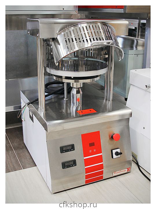 Пресс Pizza Group PF-33 используется на предприятиях пищевой промышленности, общественного питания и торговли для изготовления круглых тестовых основ для пиццы. Модель оснащена 2 формующими пластинами со скошенными краями и вмонтированными в них спиралеобразными ТЭНами, двумя термостатами и таймером, устанавливающим время контакта. Стальная защитная решетка полностью закрывает рабочие поверхности, гарантируя безопасность оператору. ТЭНы модели выполнены из нержавеющей стали.