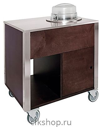 Специальный цилиндр, снабженный пружинным механизмом, удерживает над поверхностью модуля несколько тарелок, в то время как остальные тарелки находятся в нагреваемом объеме. По мере использования тарелок автоматически осуществляется их подъем. Корпус модуля выполнен из шпонированных деревянных панелей. Деревянные ножки покрыты полированной нержавеющей листовой сталью. Конструкция оснащена 4 поворотными колесами, 2 из которых снабжены тормозом.