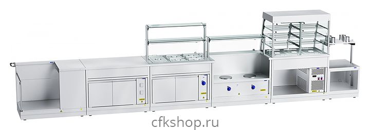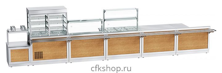 Внимание! На фото аналогичная модель с декоративной панелью цвета орех. Линия раздачи HOT-LINE по умолчанию изготавливается с панелями из нержавеющей стали!
