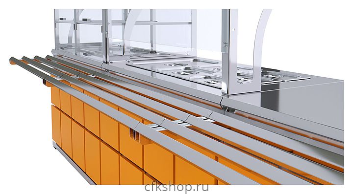 Кассовый прилавок Luxstahl КК-1200 Premium Domino используется на предприятиях общественного питания и торговли для оборудования рабочего места продавца-кассира. Модель оснащена розеткой для подключения кредитно-кассового аппарата и вместительной полкой в нише. Каркас выполнен из нержавеющей стали AISI 430 толщиной 1 мм, фасад - из ЛДСП, направляющая для подносов - из профильной трубы 25х25 мм.