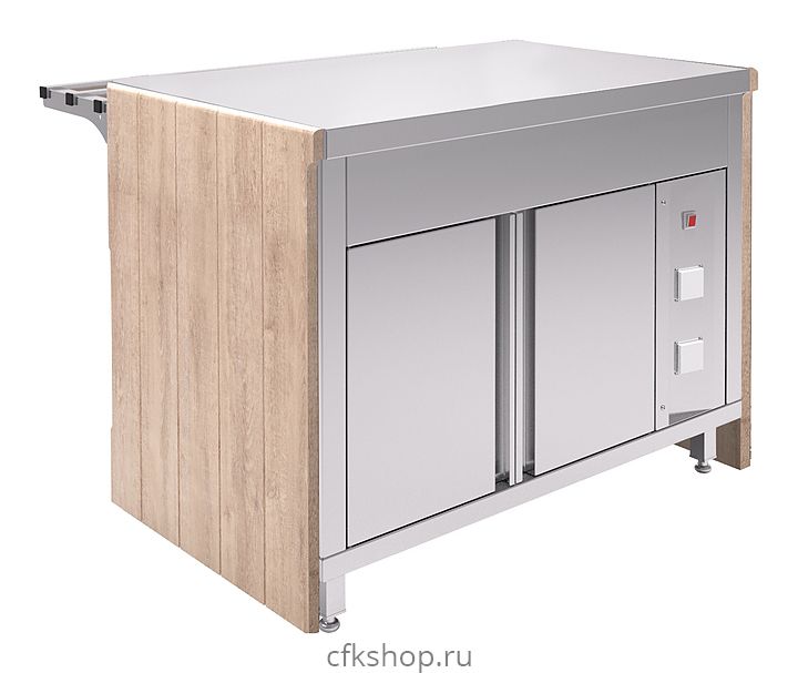 Внимание! На фото аналогичная модель другого размера со столешницей из нержавеющей стали, дверками в нише и направляющей для подносов.
