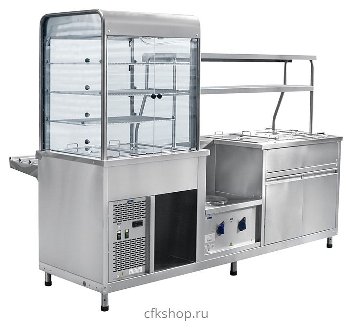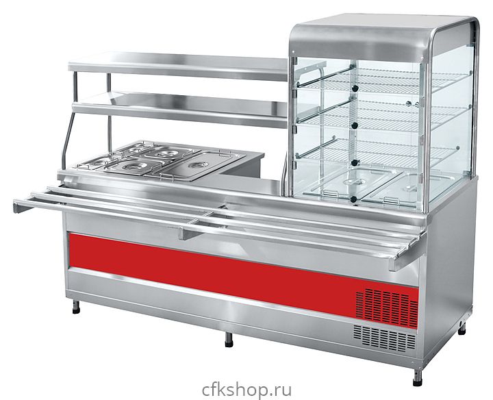 - Двойная полка над мармитом с подсветкой для выкладки блюд