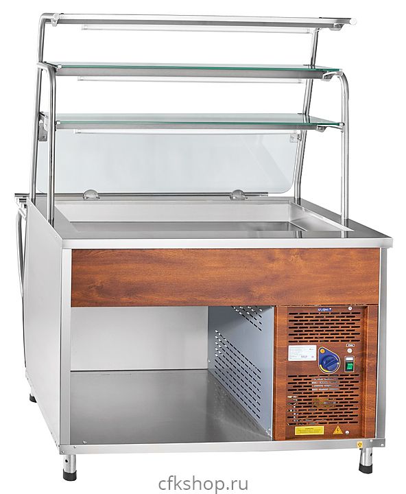 Прилавок-витрина Abat ПВВ(Н)-70Т-НШ используется в составе линии раздачи Премьер для демонстрации, охлаждения, кратковременного хранения блюд, холодных закусок и напитков на предприятиях общественного питания и торговли. Модель оснащена регулируемыми по высоте ножками.