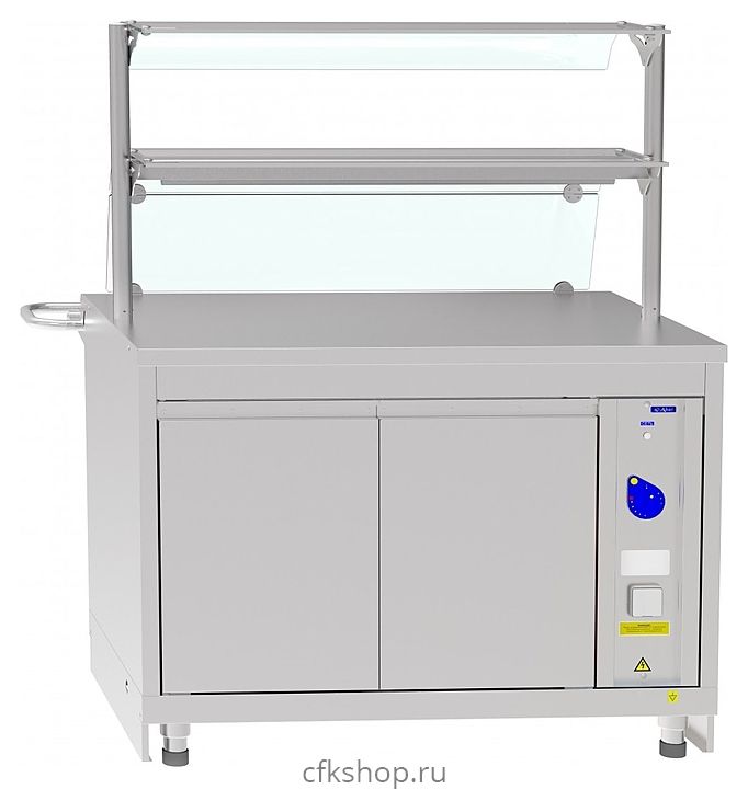 - Внутренний объем прилавка обогревается теплым воздушным потоком, создаваемым тепловентилятором, который обеспечивает равномерное распределение температуры