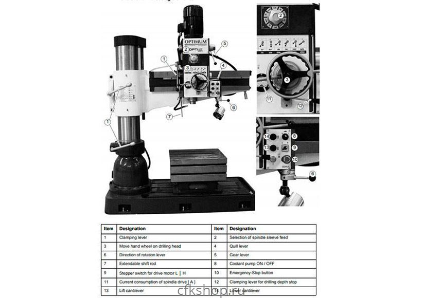 - Сверлильная головка и колонна могут быть зафиксированы или ослаблены вместе или отдельно;