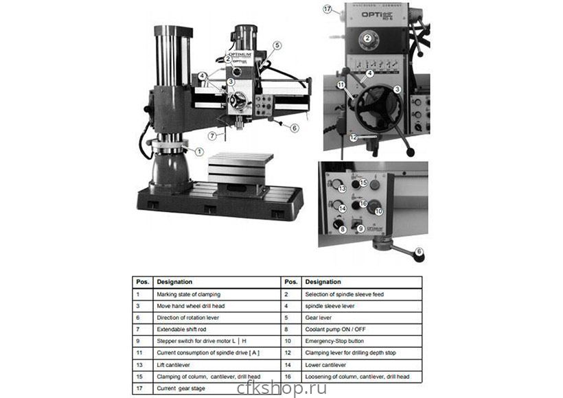 - Сверлильная головка и колонна могут быть зафиксированы или ослаблены вместе или отдельно;
