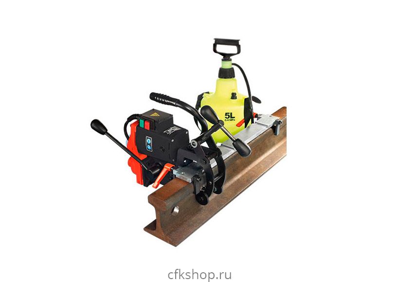 Машина для сверления рельсов MCP-1 оснащена мощным однофазным электрическим мотором и встроенной системой подачи СОЖ, обладает высокой эффективностью при малом весе и габаритах. MCP-1 способна выполнять отверстия в объемно закаленных и незакаленных рельсах без предварительной разметки (благодаря применению специальной метки) кольцевыми фрезами до 36 мм.В комплект поставки входит набор шаблонов для работы на рельсах, выпускаемых согласно ГОСТ.