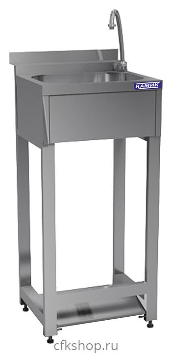 Рукомойник КАМИК Рн-20297пн используется на предприятиях общественного питания и торговли. Модель оборудована педальным механизмом. Сварной каркас и столешница выполнены из нержавеющей стали AISI 430 толщиной 1 мм, цельнотянутая емкость - из нержавеющей стали AISI 304.