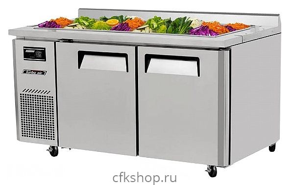 Холодильный салат-бар Turbo air KSWR15-2-750 предназначен для кратковременного хранения ингредиентов для приготовления салатов на предприятиях пищевой промышленности, общественного питания и торговли. Модель оснащена 2 дверцами с эргономичными ручками, 2 регулируемыми полками и 4 колесами. Корпус выполнен из нержавеющей стали (гальванизированная сталь на оборотной стороне и внизу), пол - из нержавеющей стали с алюминиевыми вставками по бокам и сзади, дверные петли и направляющие для гастроемкостей - из высококачественной нержавеющей стали, полки - из толстой стальной проволоки с виниловым покрытием, уплотнение - из ABS-пластика.