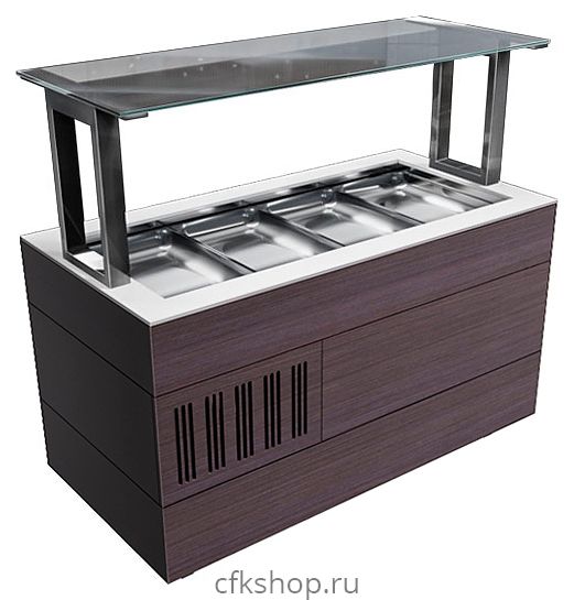 Холодильный салат-бар Astropit СБХОН41-002 предназначен для кратковременного хранения и демонстрации салатов и других готовых блюд в составе линий раздач на предприятиях общественного питания. Модель оснащена тумбой с нишей, LED-подсветкой, колесами, 2 из которых с тормозами и полкой посередине в основании ниши для хранения инвентаря. Тумба оклеена пластиком и выполнена из МДФ со скрытым крепежом и белого камня.
