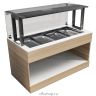 Тепловой салат-бар Astropit СБТСН41-001 предназначен для демонстрации, подогрева и поддержания постоянной температуры готовых блюд в составе линий раздач на предприятиях общественного питания. Модель оснащена тумбой с нишей, LED-подсветкой, фронтальным экраном, колесами, 2 из которых с тормозами и смещенной полкой в основании ниши для хранения инвентаря. Тумба оклеена пластиком и выполнена из МДФ со скрытым крепежом и белого камня.