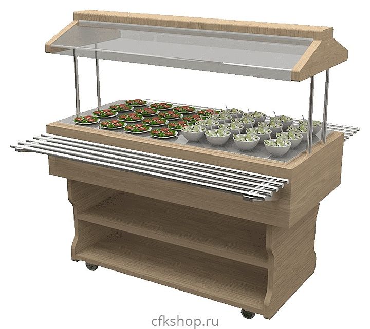 Нейтральный салат-бар Gastrolux ПН-157/W серии WoodLine предназначен для демонстрации готовых блюд в составе линий раздач или самостоятельно на предприятиях общественного питания и торговли. Модель оснащена полкой с подсветкой и колесами. Каркас выполнен из дерева, столешница - из нержавеющей стали.