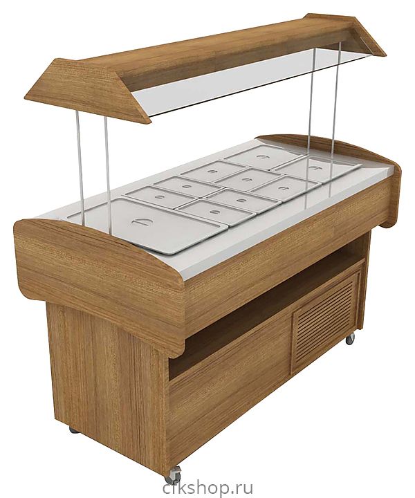 Тепловой салат-бар OZTI OSBEH 01 предназначен для демонстрации, подогрева и поддержания постоянной температуры готовых блюд в составе линий раздач на предприятиях общественного питания. Ванна выполнена из нержавеющей стали, декоративные панели - из дерева.
