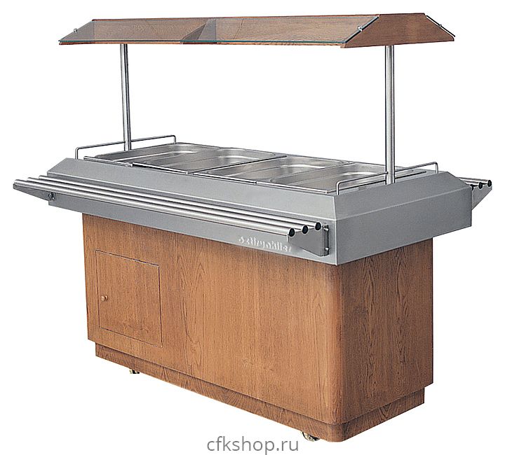 Тепловой салат-бар OZTI OSBI 15894 предназначен для демонстрации, подогрева и поддержания постоянной температуры готовых блюд в составе линий раздач на предприятиях общественного питания. Ванна выполнена из нержавеющей стали, декоративные панели - из дерева.