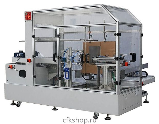 Сборщик коробов Hualian CXJ-6040C используется на предприятиях различных отраслей для автоматического формирования упаковочных картонных коробов из заготовок. Принцип работы: предварительно загруженная в магазин картонная вырубка захватывается специальным механизмом, затем происходит формирование прямоугольника корпуса, складывание нижних створок и герметизация дна клейкой лентой. Модель оснащена защитным кожухом с распашными дверьми и электромеханической панелью управления.