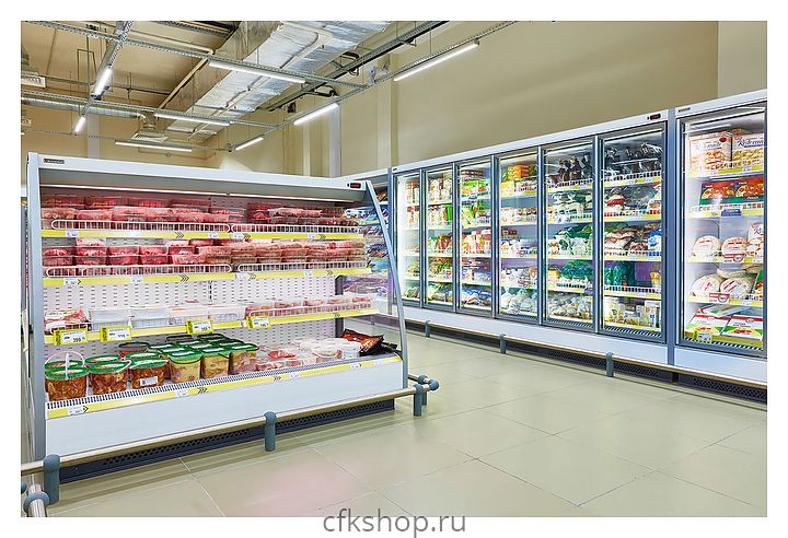 - Комбинированное решение дает возможность продемонстрировать как сыпучие товары, так и продукты в упаковке