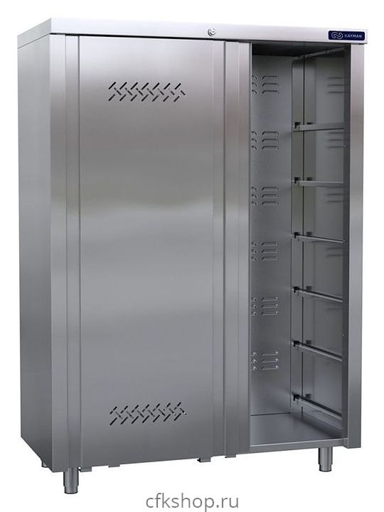 Шкаф KAYMAN ШХ-252/1206-А используется на предприятиях общественного питания и торговли для хранения хлеба и хлебобулочных изделий. Модель оснащена распашными дверями с замком. Материал элементов шкафа (кроме дна и задней стенки) AISI430, материал дна и задней стенки - оцинкованная сталь, полки - из древесины. Профиль ножек - круглая труба.