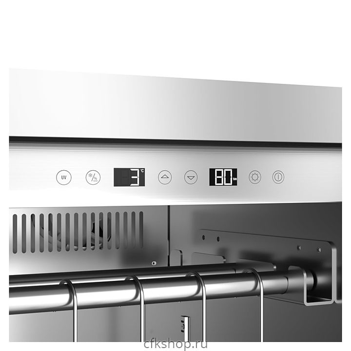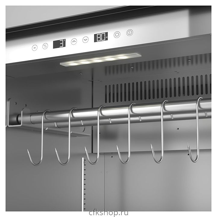 В комплект поставки входят 7 полок и вешалка с крючками для мяса из нержавеющей стали.