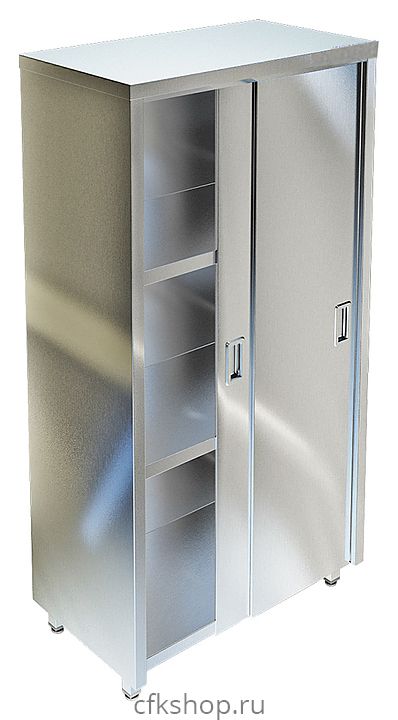 Шкаф KAYMAN ШПИ-222/1505 используется в производственных цехах, на предприятиях общественного питания и торговли для хранения кухонной утвари, инвентаря и сухих продуктов. Модель оснащена 3 полками и дверями-купе. Корпус выполнен из легированной нержавеющей стали AISI 430 толщиной 0,8 мм, задняя стенка - из оцинкованной стали толщиной 0,5 мм.
