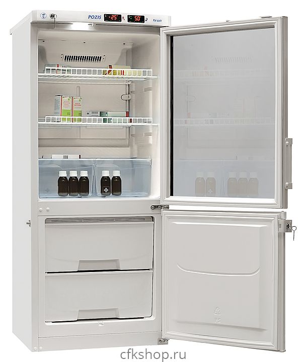Фармацевтический шкаф POZIS ХЛ-250 предназначен для хранения лекарственных, биологических, ветеринарных препаратов в аптеках, медицинских, больничных и научно-исследовательских учреждениях, диагностических центрах и на предприятиях фармацевтической отрасли. Модель оснащена дверью с тонированным стеклом и металлической дверью с замками, 2 роликами и 2 регулируемыми опорами. Для удобства пользования дисплеи, отображающие температуру, располагаются над дверью в зоне постоянной видимости. Внутренний шкаф и панели дверей выполнены из полимерных материалов с антимикробным покрытием, теплоизоляция - из пенополиуретана, герметизация дверных проемов - из уплотнителей с магнитными вставками.