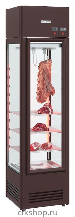 Холодильный шкаф Carboma D4 VM 400 HHC 0102 предназначен для демонстрации, охлаждения и кратковременного хранения деликатесов, колбас, сыров и мяса на предприятиях общественного питания и торговли. Модель оснащена 4 полками-решетками, дверью со стеклопекетом и встроенным замком, регулируемыми ножками высотой от 30 до 50 мм и встроенной эргономичной ручкой. Внешняя поверхность выполнена из черной крашеной стали, внутренняя поверхность - из нержавеющей стали.