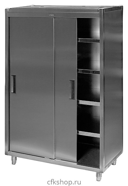 Кухонный шкаф ТММ ШВК 1200/600 предназначен для хранения продуктов, не требующих специального температурного режима, посуды и кухонных принадлежностей на предприятиях общественного питания и торговли. Оборудование оснащено дверями-купе. Модель полностью выполнена из нержавеющей стали.