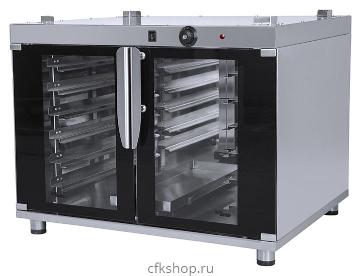 Расстоечный шкаф Grill Master РПК-8 используется на небольших предприятиях пищевой промышленности, общественного питания и торговли для расстойки тестовых заготовок, в процессе которой тесто увеличивается в объеме и приобретает ровную поверхность, восстанавливается его пористость. Модель оснащена 8 направляющими под противни и 2 распашными дверьми. Корпус выполнен из нержавеющей стали, двери - из стекла с черной окантовкой.