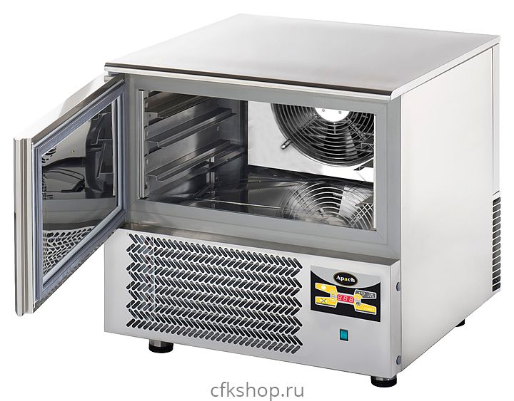 Шкаф шоковой заморозки Apach SH03 предназначен для быстрой заморозки продуктов и приготовленных блюд на предприятиях общественного питания и торговли. Модель с электронной панелью управления оснащена встроенным холодильным агрегатом, самозакрывающимися дверями с магнитным уплотнителем и регулируемыми по высоте ножками. Корпус и внутренняя камера выполнены из нержавеющей стали AISI 304, днище, потолок и тыльная часть - из оцинкованного листа, изоляция - из пенополиуретана толщиной 60 мм.
