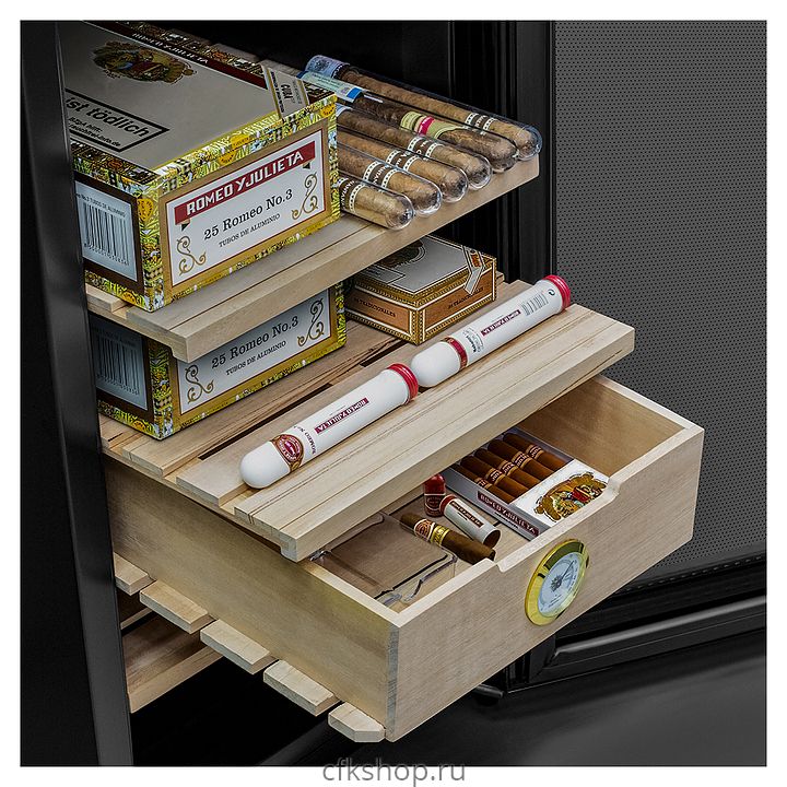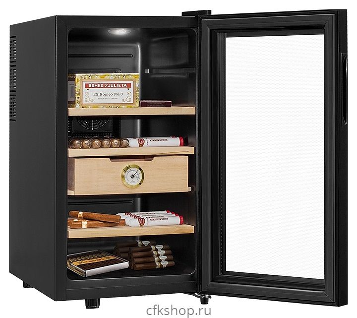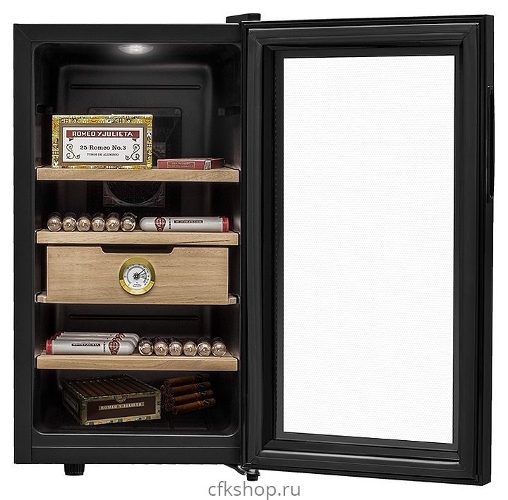 Сигарный шкаф MEYVEL MC-48BT предназначен для хранения в оптимальных условиях и демонстрации табачных изделий в специализированных магазинах, гостиницах, складских помещениях, а также домашних условиях. Модель оснащена распашной дверью на внешних петлях и сенсорной панелью управления с цифровым дисплеем. Копрус выполнен из стали с антикоррозийным покрытием черного цвета, рама двери – из черного пластика, полки и ящик – из массива древесины испанского кедра.